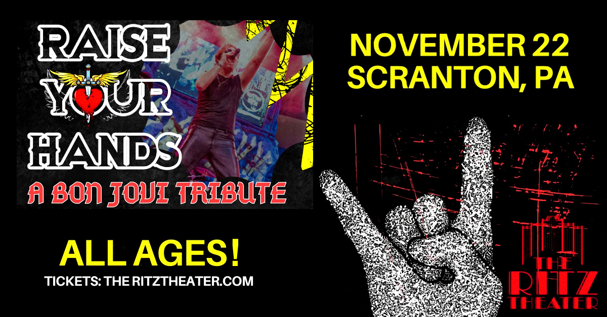November 22, 2025 @ 6:30 pm - 10:30 pm Raise Your Hands: Tribute to Bon Jovi (All Ages!) The Ritz Theater 222 Wyoming Ave, Scranton, PA, United States