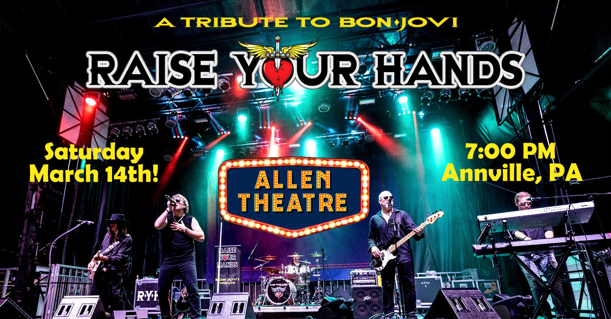 March 14 @ 7:00 pm - 9:00 pm Raise Your Hands – Tribute to BON JOVI (Allen Theatre) The Allen Theatre 36 E Main St, Annville, PA, United States