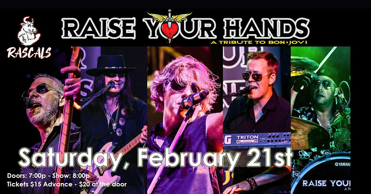 February 21 @ 8:00 pm - 11:00 pm Bon Jovi night with RYH at Rascal’s in Worcester, MA! Rascals 70 James Street, Worcester, MA, United States